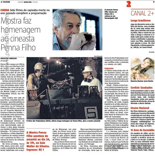 Mostra Penna Filho em Salvador em fevereiro de 2016, levou sete produções dirigidas pelo cineasta falecido Penna Filho.